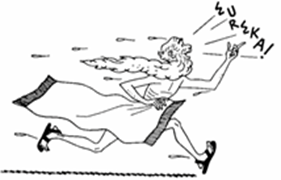 Yaşadığı dönemde ünlü bir matematikçi, fizikçi ve mühendis olan Arşimet, kralın problemini çözmek için gece gündüz düşünmeye başlar. Günlük banyosunu yapmak için gittiği hamamda, hala altın tacın akıbetini düşünürken, kendini küvetin içine bırakır. Bu sırada dışarıya suyun taştığını gören Arşimet, neden bunun olduğunu anlamaz ve kendini biraz daha suya batırır. Daha çok suyun dışarı taştığını fark eden Arşimet, Kral Hiero’nun problemini çözdüğünü anlamıştır. Bu sırada Yunanca ‘Buldum’ anlamına gelen ‘Evreka’ diyerek hamamdan dışarı koşmaya başlar.